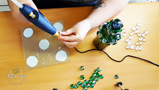 The instructions are quite basic. You need to let your glue gun heat up and then you need to start attaching the glass stones in the design that you would like to glue them.
